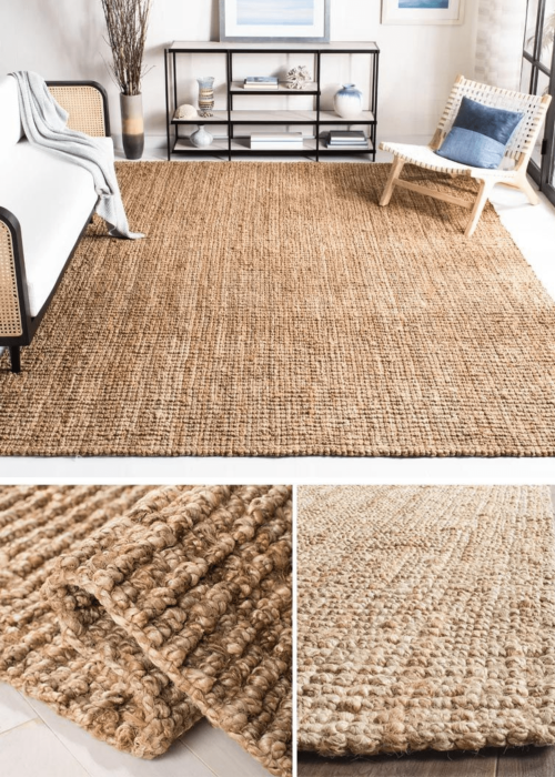 Jute rugs are known for their natural, earthy appearance, and are typically a light brown or tan colour, although they can be dyed in various colours. They have a distinct woven texture that can range from fine to coarse and often feature irregularities and imperfections that add to their rustic charm.